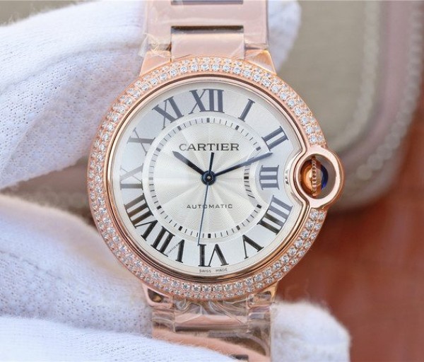 Swiss Made Cartier Ballon Bleu 36mm RG White Textured Dial Diamond Bezel