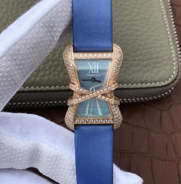 Swiss Made Cartier High Jewelry Watches RG WJ306014 Blue Dial Blue Fabric Strap