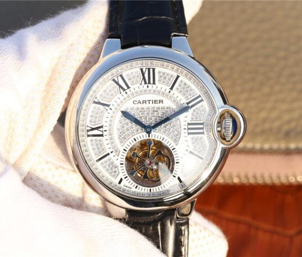 Swiss Made Cartier Ballon Bleu de Cartier Tourbillon SS Leather Strap Diamonds Dial