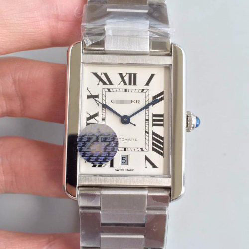 Swiss Made Cartier Tank MC SS Black Dial Diamonds Bezel Leather Strap