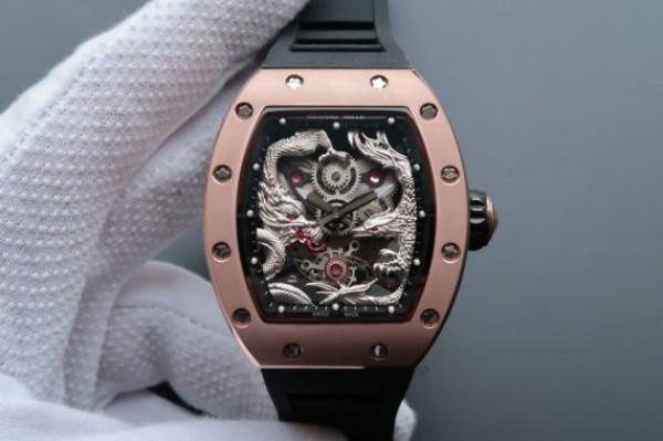 Richard Mille RM057 Dragon Phoenix RG Case SS Dragon Dial Black Rubber Strap