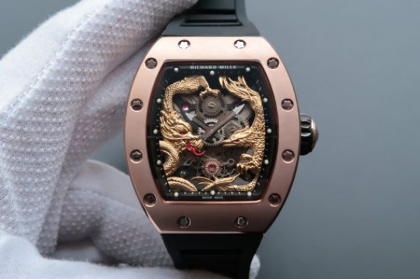 Richard Mille RM057 Dragon Phoenix RG Case YG Dragon Dial Black Rubber Strap