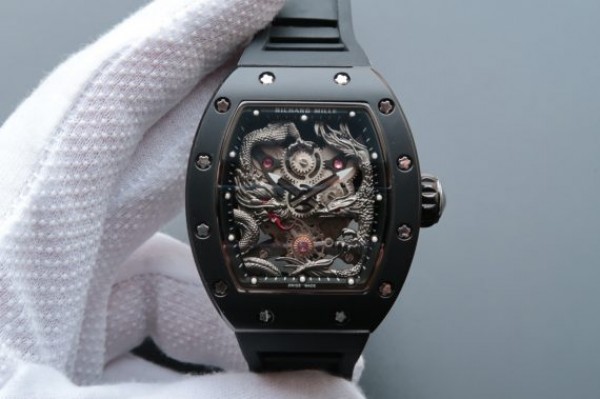 Richard Mille RM057 Dragon Phoenix SS Case Black Dragon Dial Black Rubber Strap