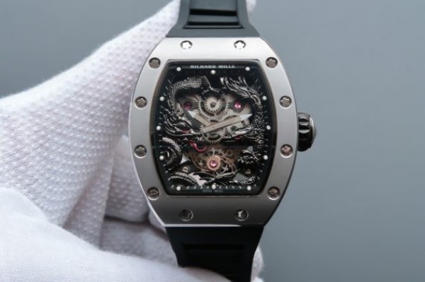 Richard Mille RM057 Dragon Phoenix SS Case Silver Dragon Dial Black Rubber Strap