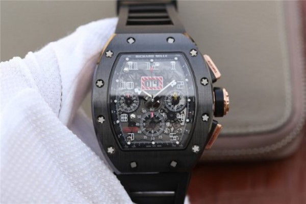 Richard Mille RM011 RG Black Ceramic Chrono Skeleton Dial Black Rubber Strap A7750