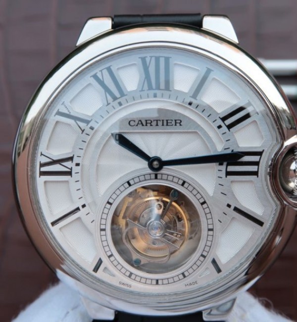 Swiss Made Cartier Ballon Bleu Tourbillon 44mm SS Black Leather Strap