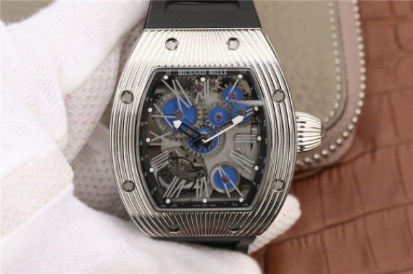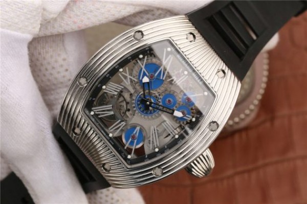 Richard Mille RM018 Hommage a Boucheron SS Yellow Skeleton Dial Blue Rubber Strap 6T51