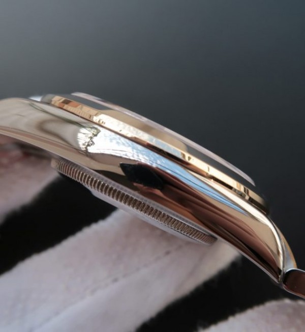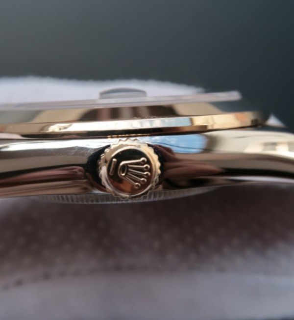 Bezel: 18K yellow gold wrapped fluted stainless steel bezel, same shape as genuine
